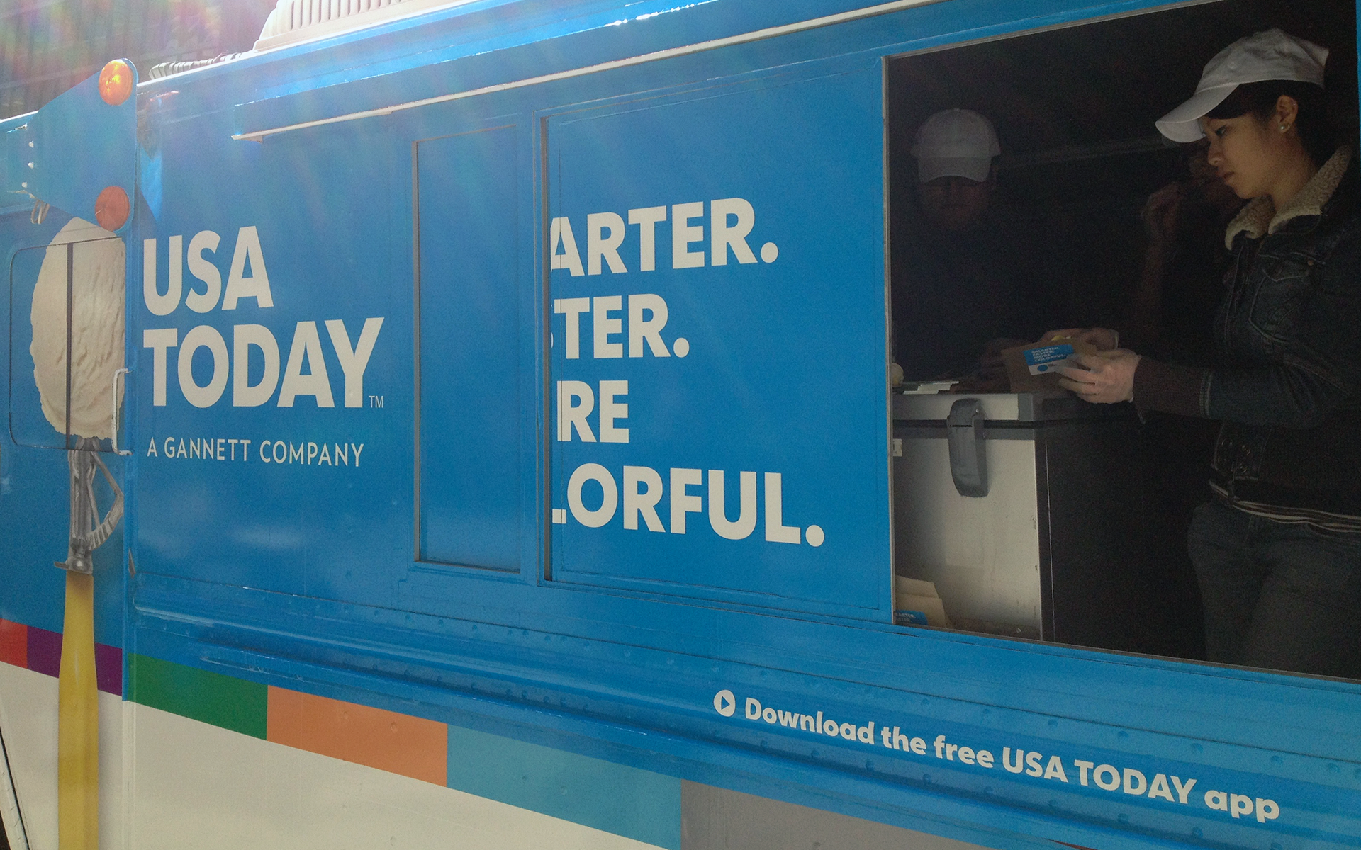 What better way to get 'today's scoop' than with a free newspaper and a double-dip of moose tracks. Our branded ice cream truck traveled the streets of NYC handing out both, with a free download of our app as the cherry on top.